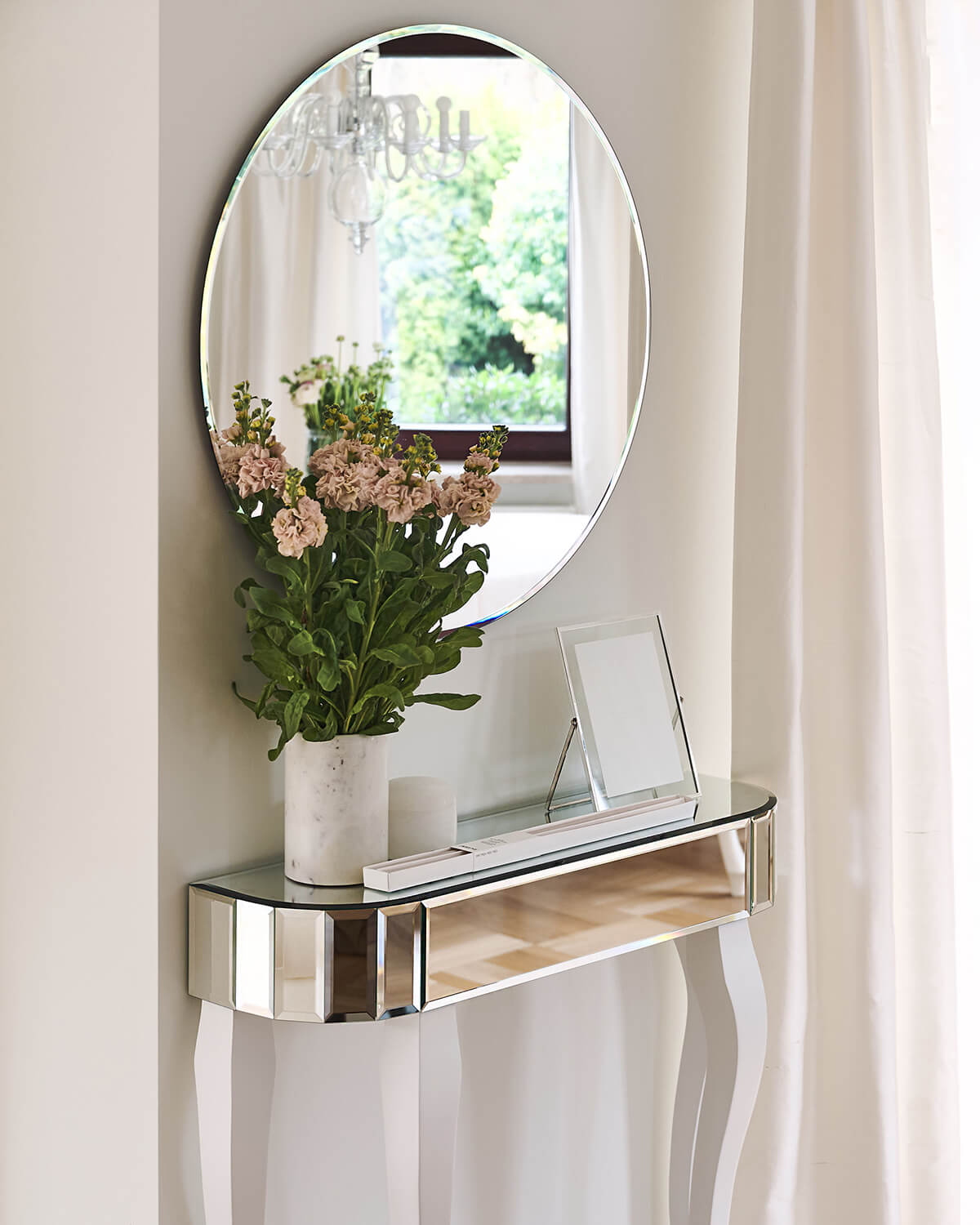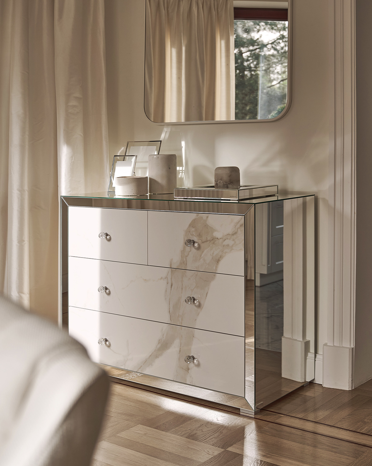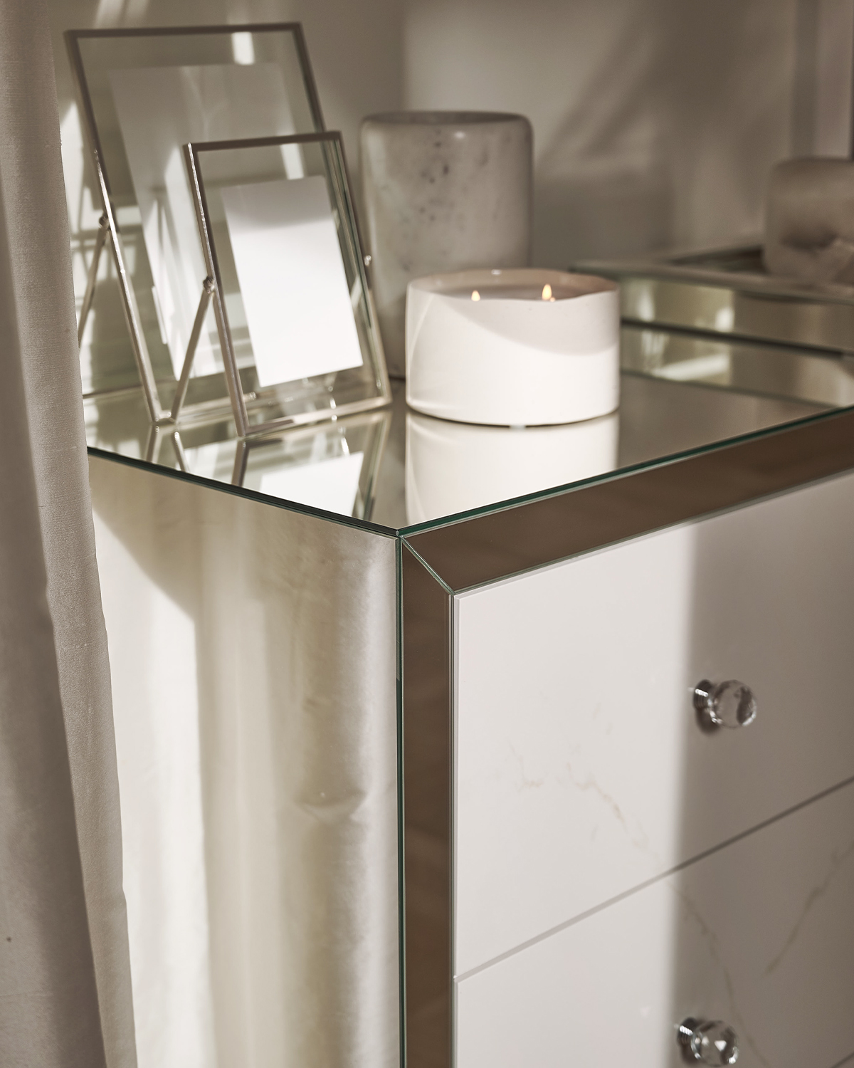Komoda przerosła moje oczekiwania – elegancka, starannie wykonana i dopracowana w każdym detalu. Jej lustrzana powierzchnia pięknie odbija światło, dodając wnętrzu przestronności i elegancji. Widać dbałość o jakość materiałów oraz precyzję wykonania, co sprawia, że mebel prezentuje się luksusowo i solidnie.