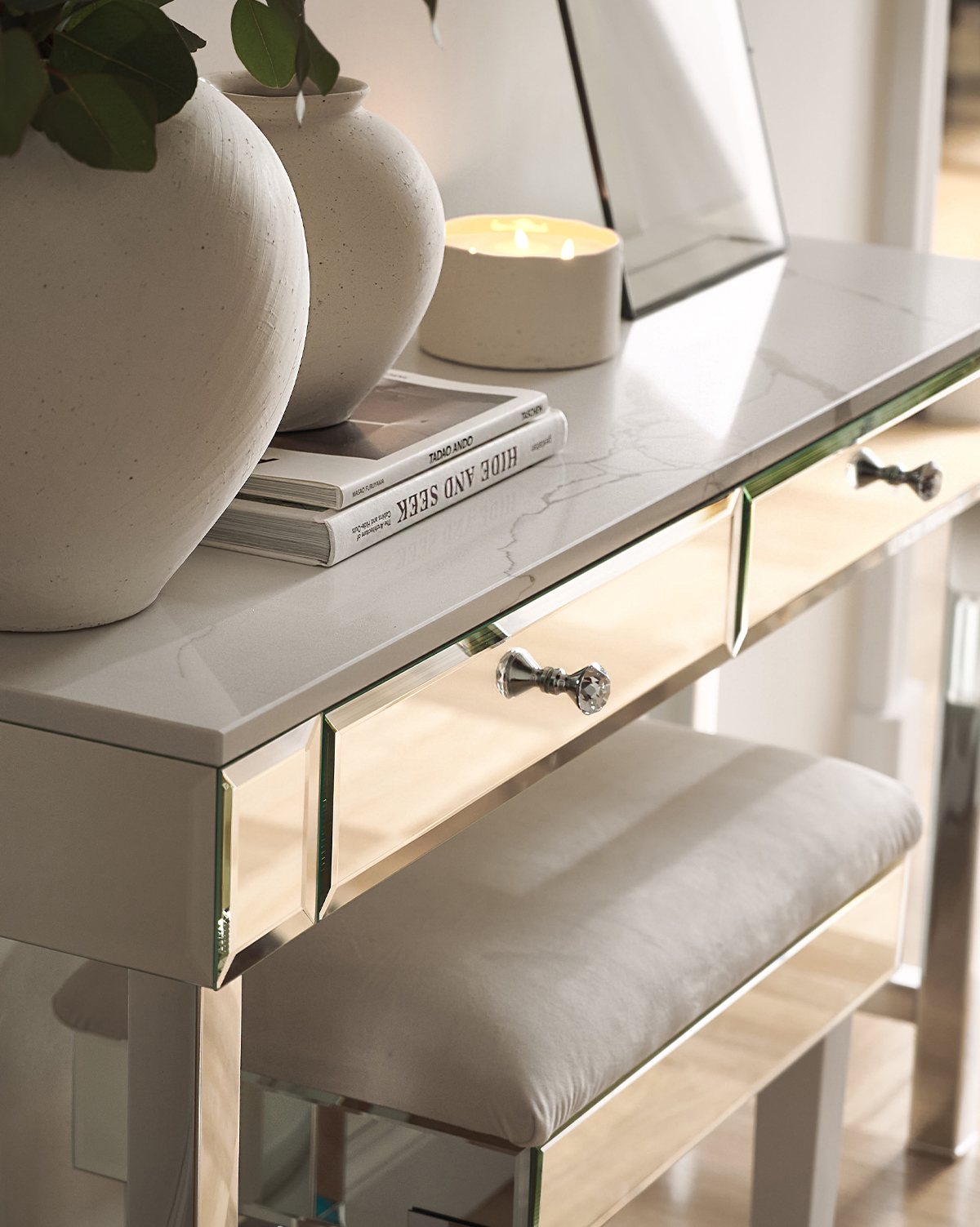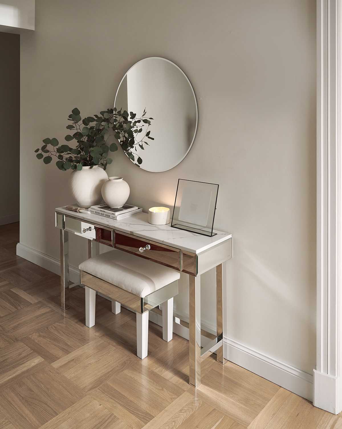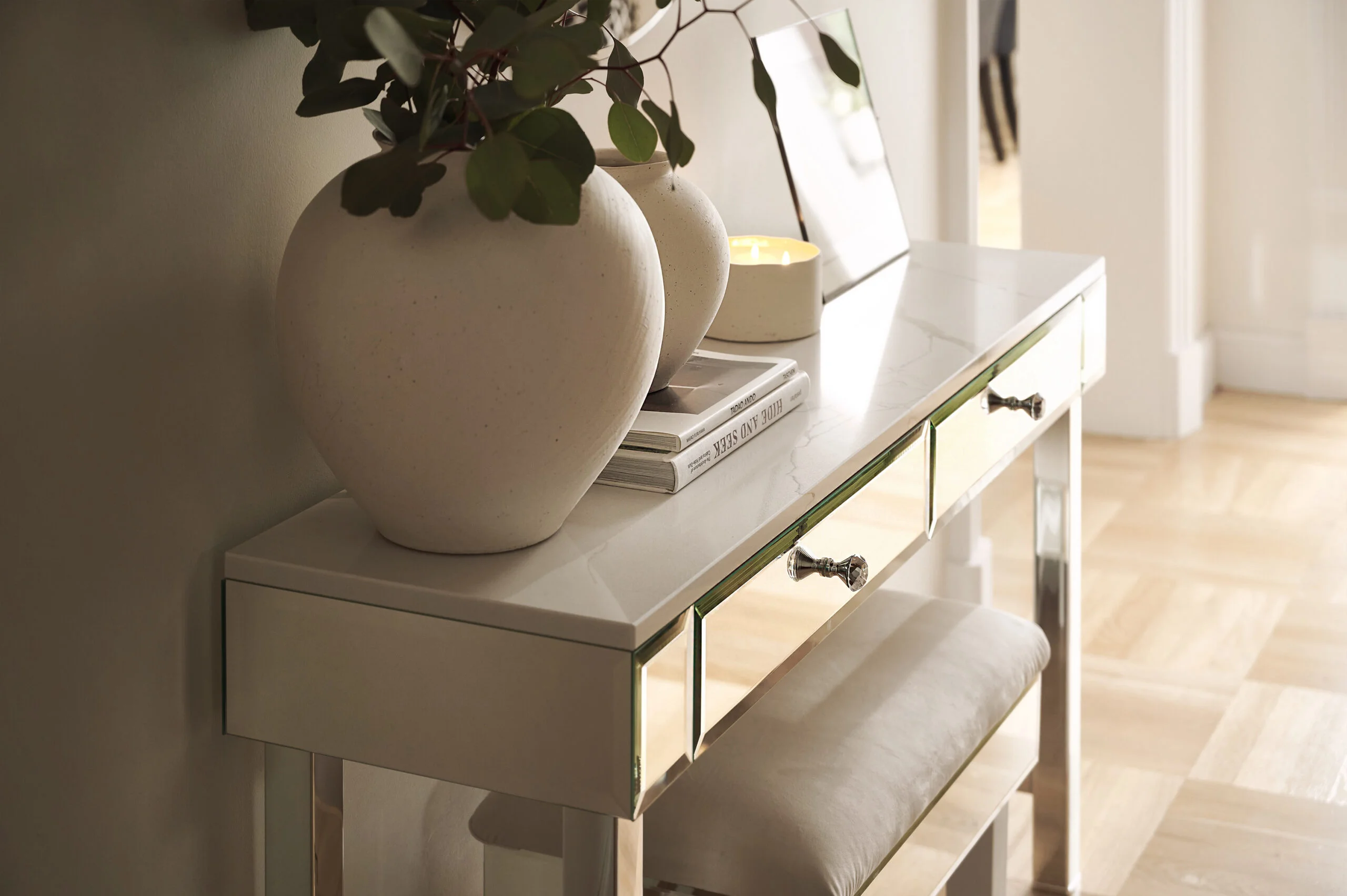 Komoda przerosła moje oczekiwania – elegancka, starannie wykonana i dopracowana w każdym detalu. Jej lustrzana powierzchnia pięknie odbija światło, dodając wnętrzu przestronności i elegancji. Widać dbałość o jakość materiałów oraz precyzję wykonania, co sprawia, że mebel prezentuje się luksusowo i solidnie.