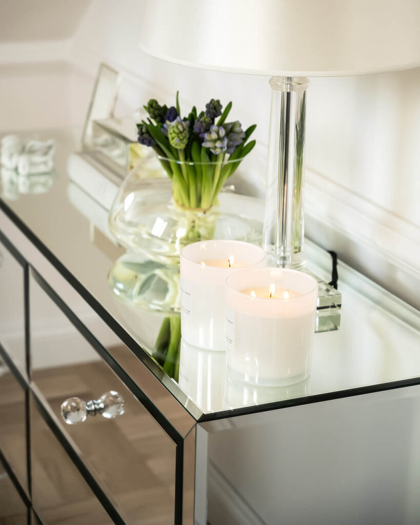 Lustro jest piękne, ale jednocześnie kruche i delikatne. Skazy na powierzchniach lustrzanych lub szklanych mogą łatwo umniejszyć jego oryginalny urok i piękno, więc warto im zapobiegać. A używanie ich w odpowiednich warunkach sprawi, że będziemy cieszyć się jego blaskiem przez nawet długie lata. Nie należy kłaść na lustrzanych i szklanych powierzchniach niczego, co ma szorstką powierzchnię lub ostre krawędzie. Rys i kółek od wody polecamy unikać poprzez używanie podkładek na lustrzanych i szklanych blatach.